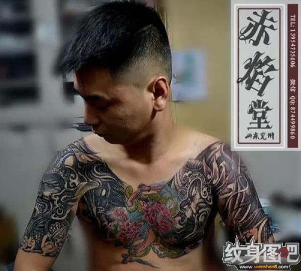 山东纹身 前胸纹身 唐狮纹身 花胸纹身