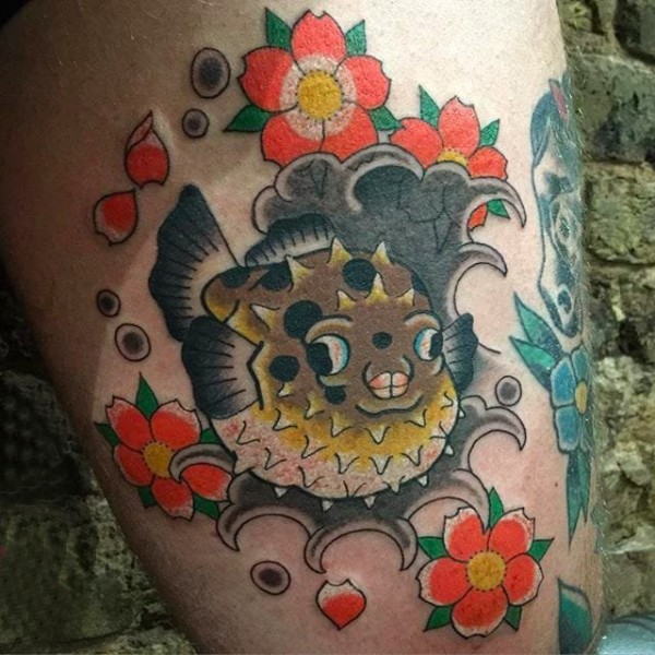 日式风格的传统花腿纹身作品欣赏