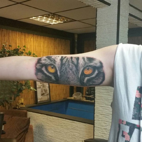 百乐动物纹身 男生手臂上彩色的老虎纹身图片