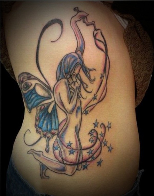 分享一款腰部时尚性感的蝶恋花纹身图案_腰部纹身图案大全_纹身图吧