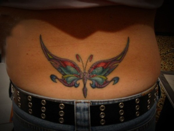 分享一款腰部时尚性感的蝶恋花纹身图案_腰部纹身图案大全_纹身图吧