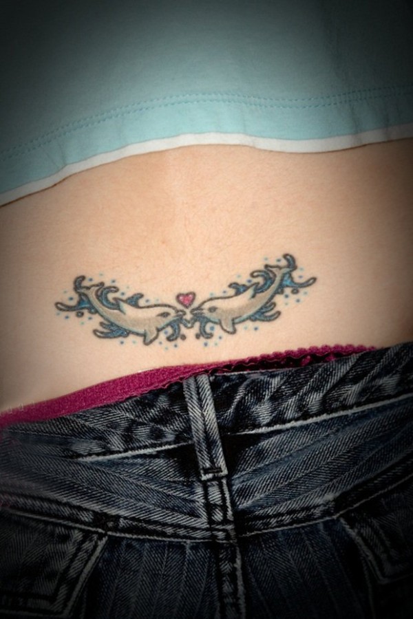 分享一款腰部时尚性感的蝶恋花纹身图案_腰部纹身图案大全_纹身图吧
