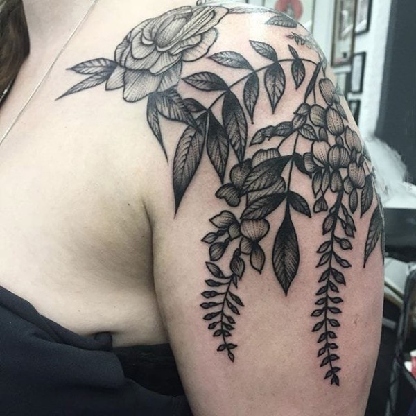 男人大臂黑白彼岸花骷髅_黑白纹身图案大全_纹身图吧