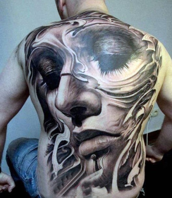 女生后腰纹身黑白灰风格抽象线条纹身图案