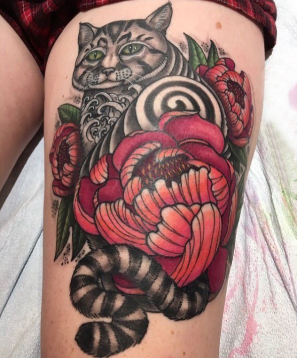 小清新猫咪纹身 女生大腿上小清新猫咪纹身动物图片