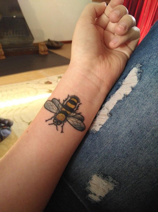 小蜜蜂纹身 女生手臂上小蜜蜂纹身可爱图案