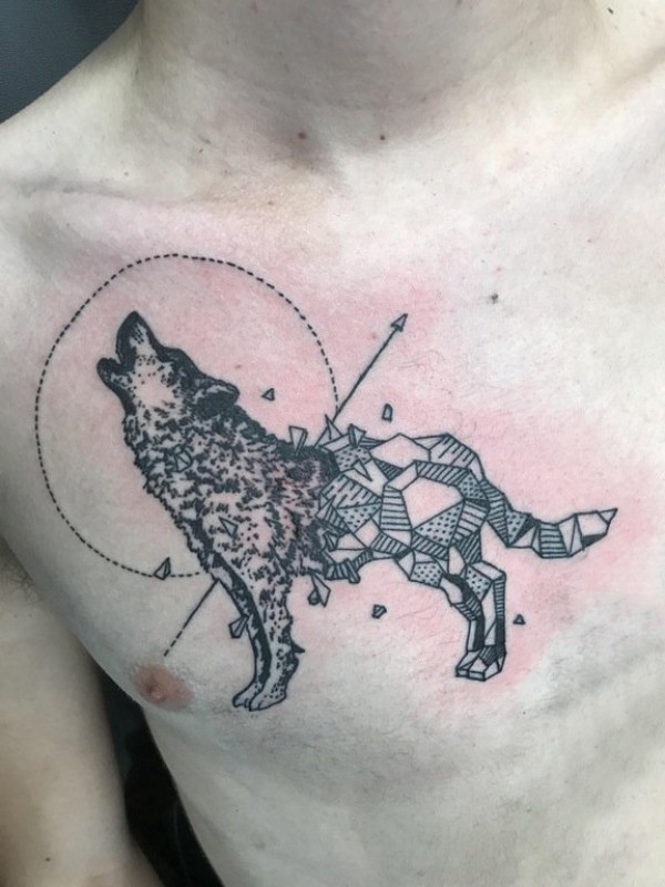 纹身胸部男 男生胸部圆形和狼纹身图片