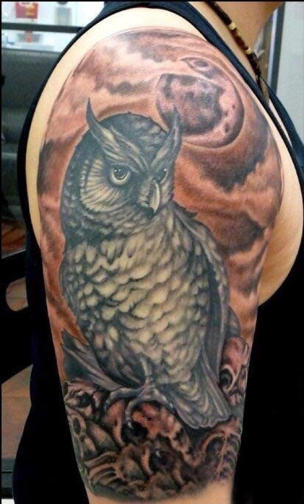 纹身猫头鹰 男生手臂上猫头鹰图腾纹身图片