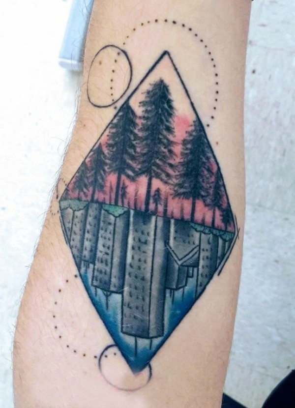 树纹身 男生手臂上树纹身几何纹身图片
