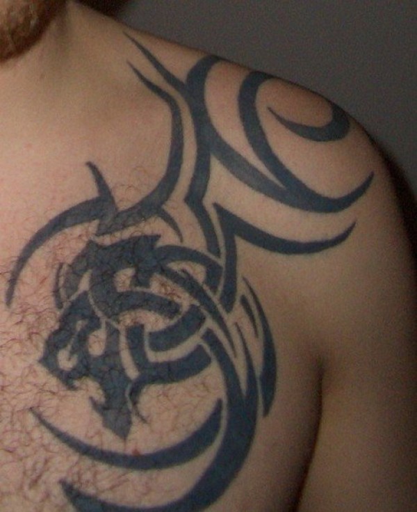 龙纹身手稿_一组老传统黑灰龙手稿纹身图案