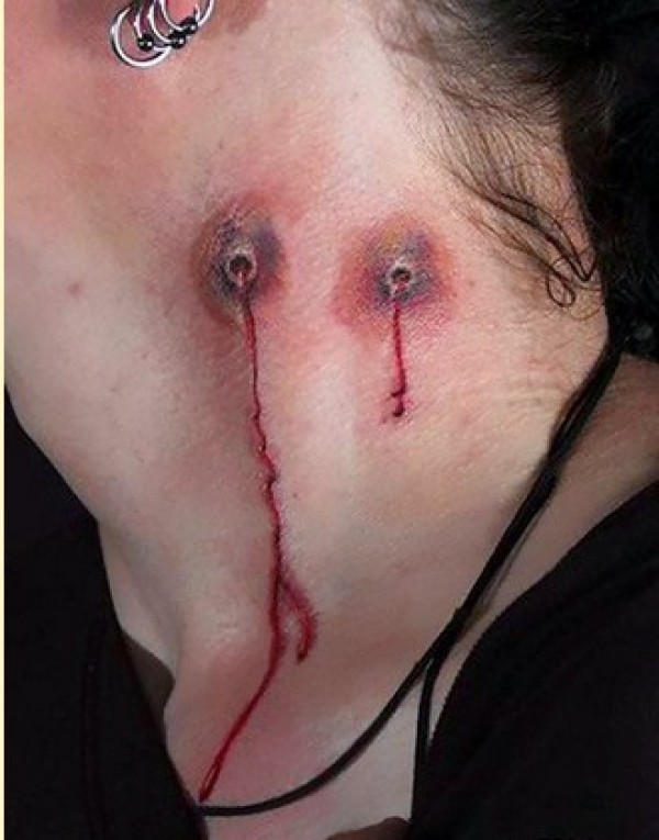 颈部个性仿真疤痕纹身图片