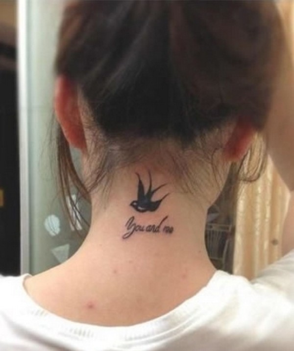 后颈部纹身小图--9张女生脖子后颈处的简约纹身图案