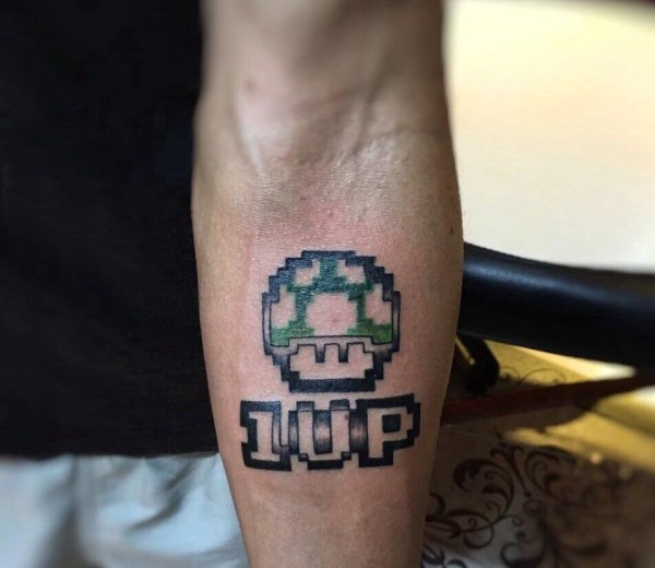 纹身卡通 男生手臂上英文和卡通蘑菇纹身图片