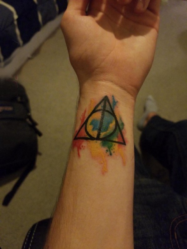 欧美手腕纹身 男生手腕上彩色的几何纹身图片