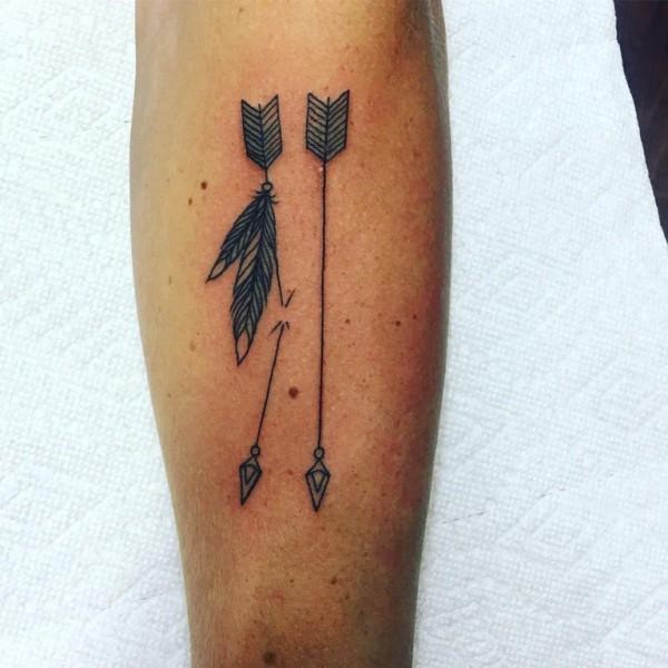 小腿对称纹身 男生小腿上黑色的箭纹身图片