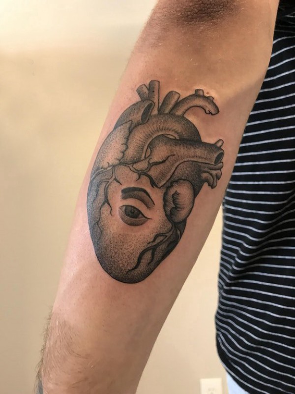 纹身黑色 男生手臂上眼睛和心脏纹身图片
