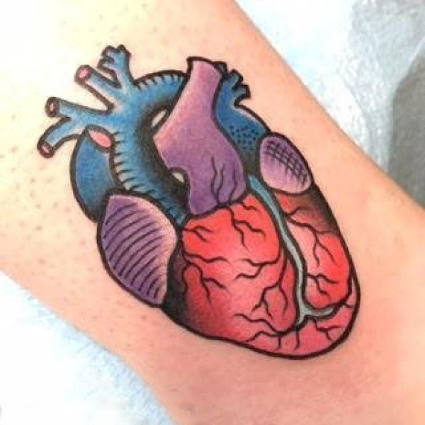 小腿对称纹身 男生小腿上彩色的心脏纹身图片
