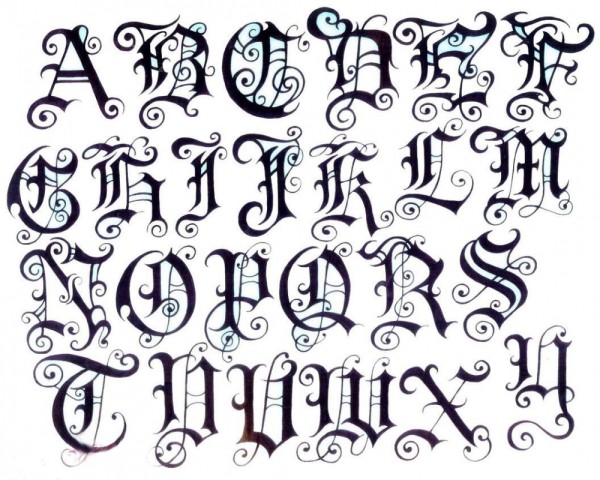花体字纹身--一组男性漂亮的花体字纹身图案