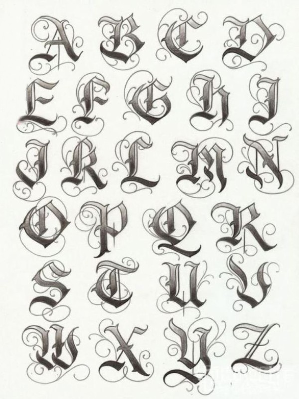 花体字纹身--一组男性漂亮的花体字纹身图案
