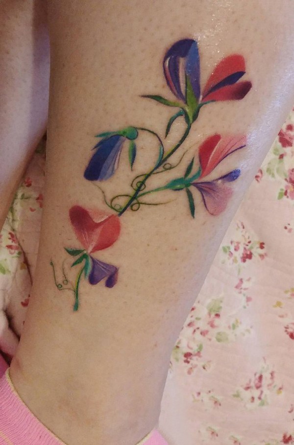 清新花朵腿部纹身图案图片_植物纹身图案大全_纹身图吧