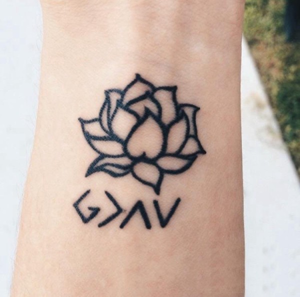 小清新植物纹身 女生手腕上黑色的莲花纹身图片