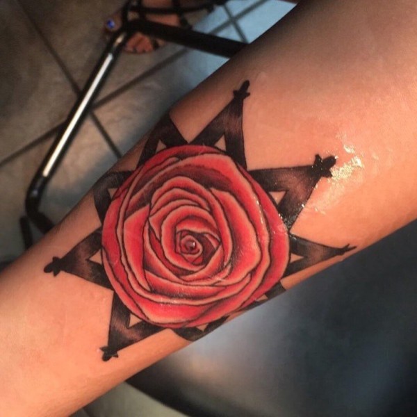 欧美玫瑰纹身 男生手臂上花朵纹身图片