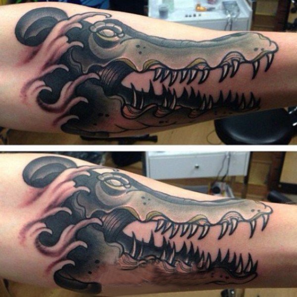 鳄鱼纹身图案 多款黑灰纹身点刺技巧鳄鱼纹身图案