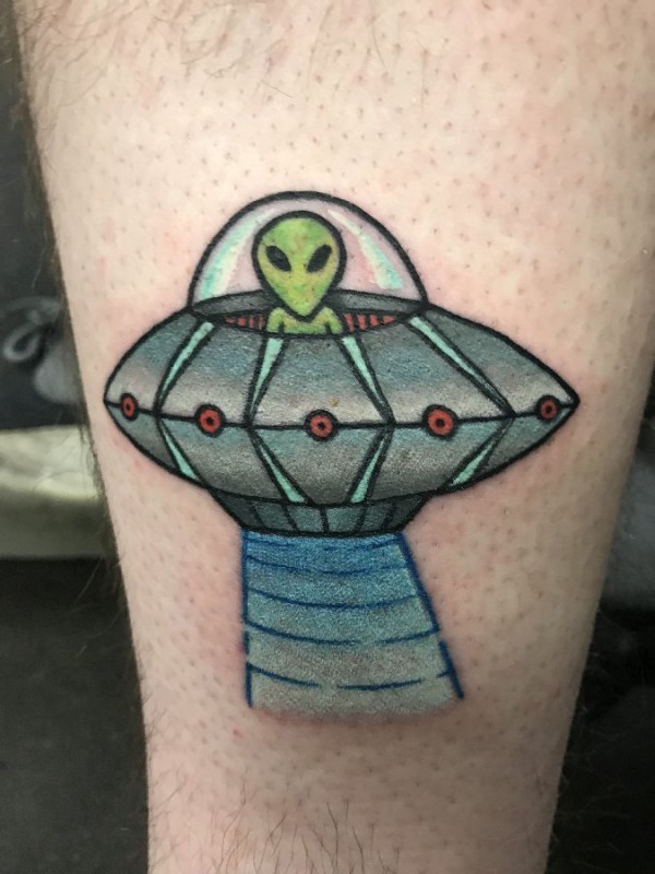 外星人纹身 男生小腿上飞碟和外星人纹身图片