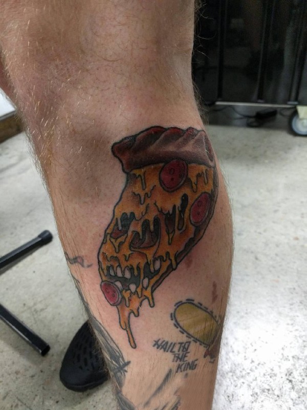 食物纹身 男生小腿上彩色的食物披萨纹身图片