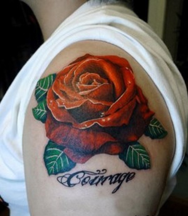 欧美玫瑰纹身 男生手臂上花朵纹身图片