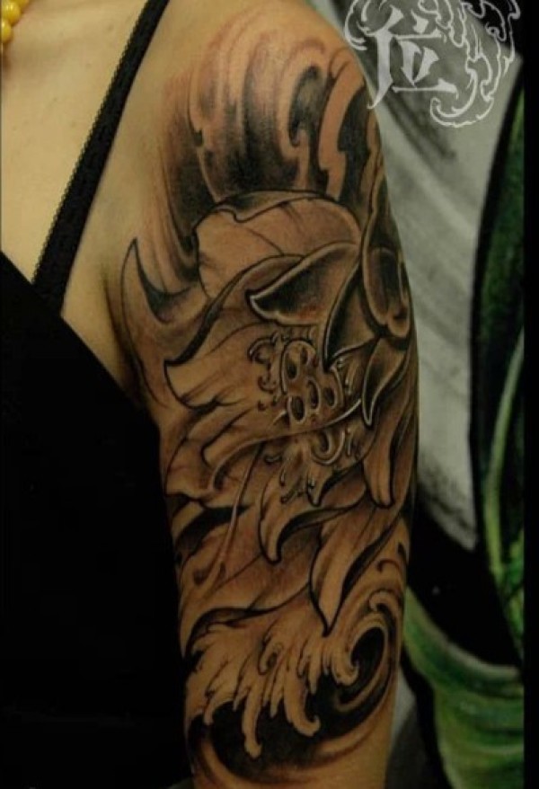 手臂莲花蛇纹身图案_臂部纹身图案大全_纹身图吧