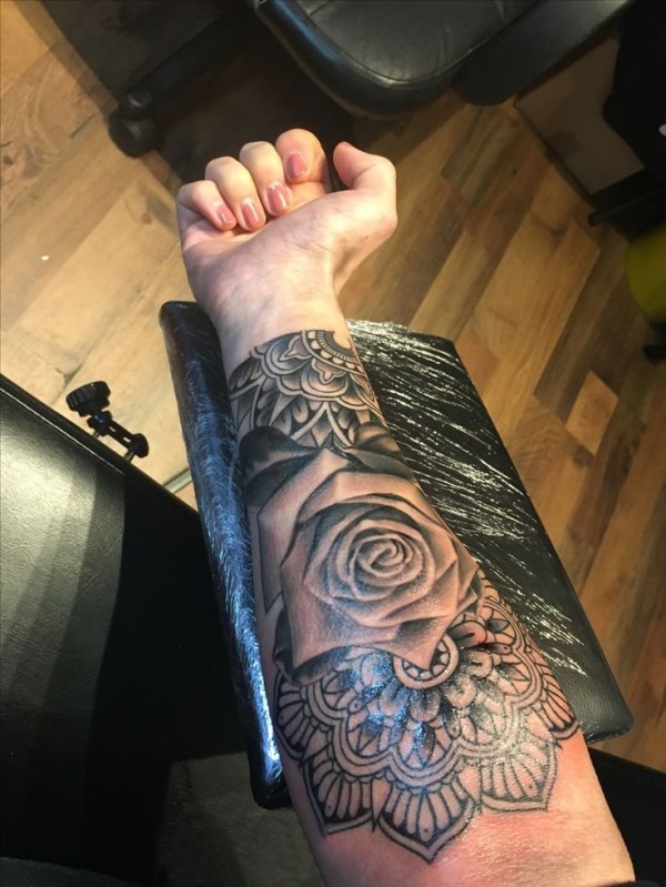 欧美玫瑰纹身 男生手臂上花朵纹身图片