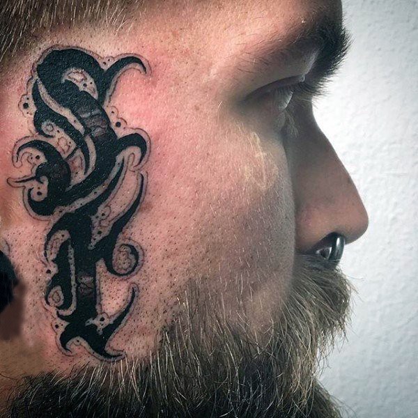 面部个性纹身花体英文字脸部传统风格纹身图案