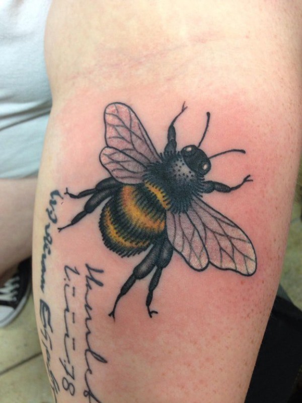 小动物纹身 男生手臂上彩色的蜜蜂纹身图片