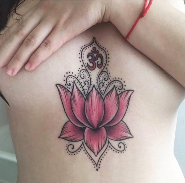 女生胸下纹身 女生胸下彩色的莲花纹身图片