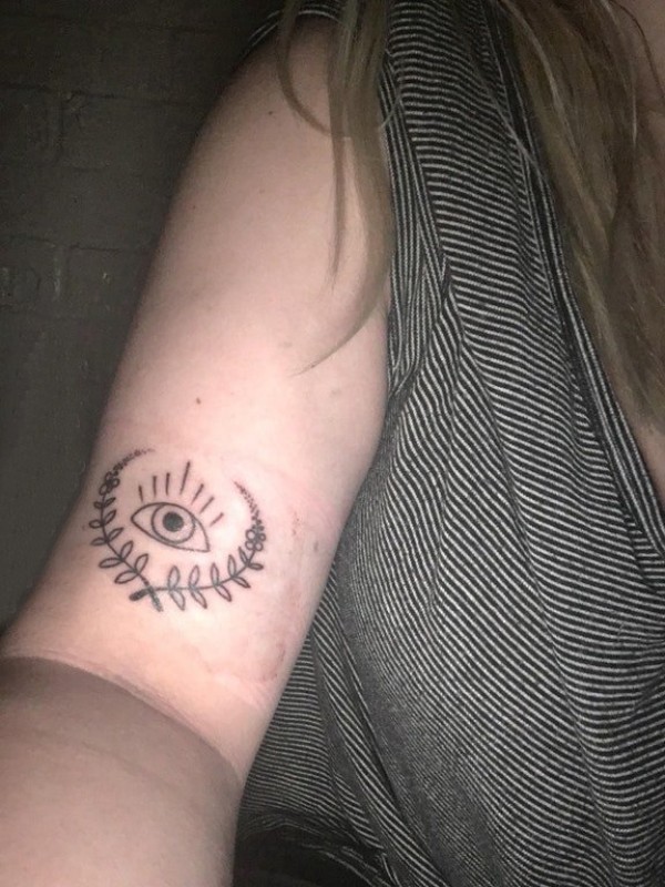 手臂纹身素材 女生手臂上植物和眼睛纹身图片