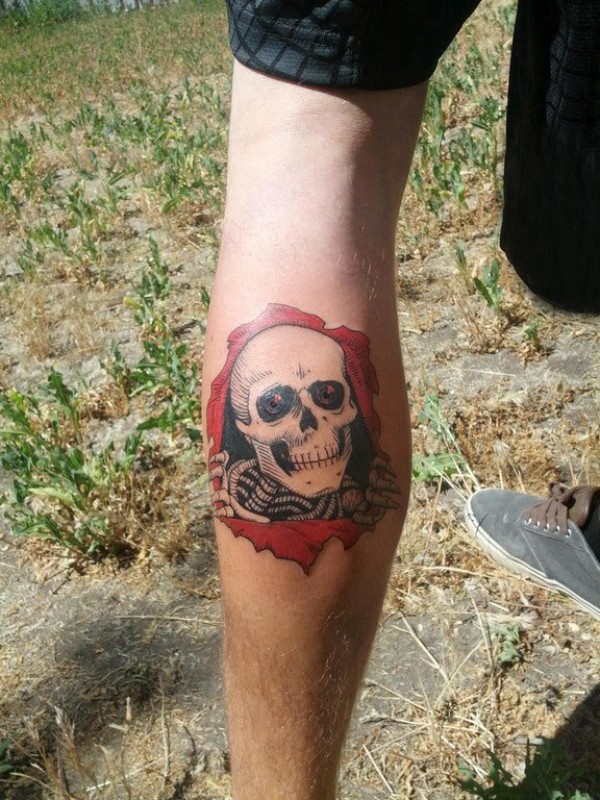纹身骷髅头 男生小腿上骷髅纹身图案