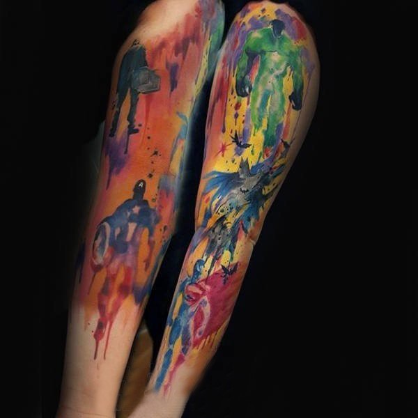帅气的彩色花腿纹身水墨画纹身图案