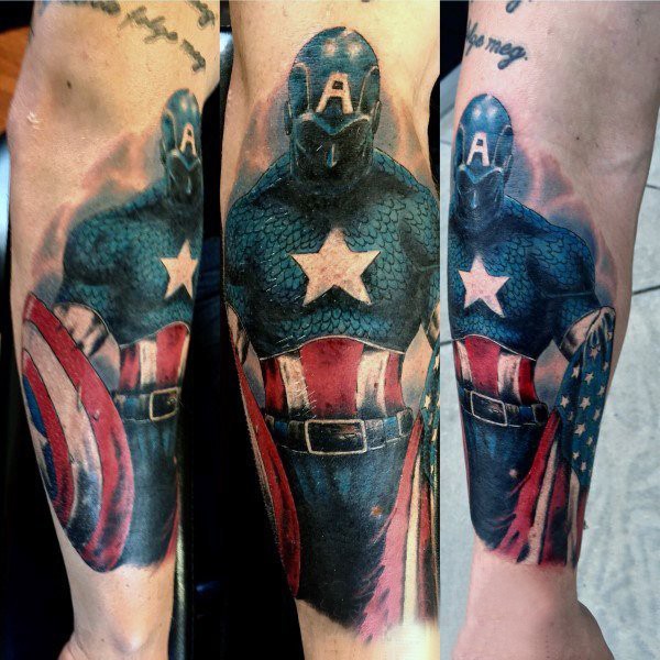 美国队长纹身图案 多款简单线条纹身彩色美国队长纹身图案