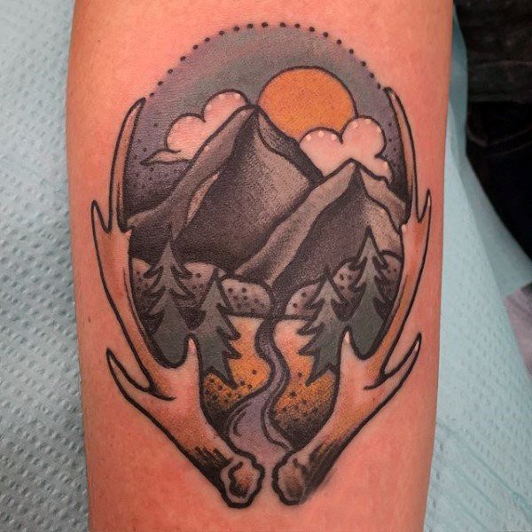 麋鹿角纹身 多款彩绘纹身素描麋鹿角纹身图案