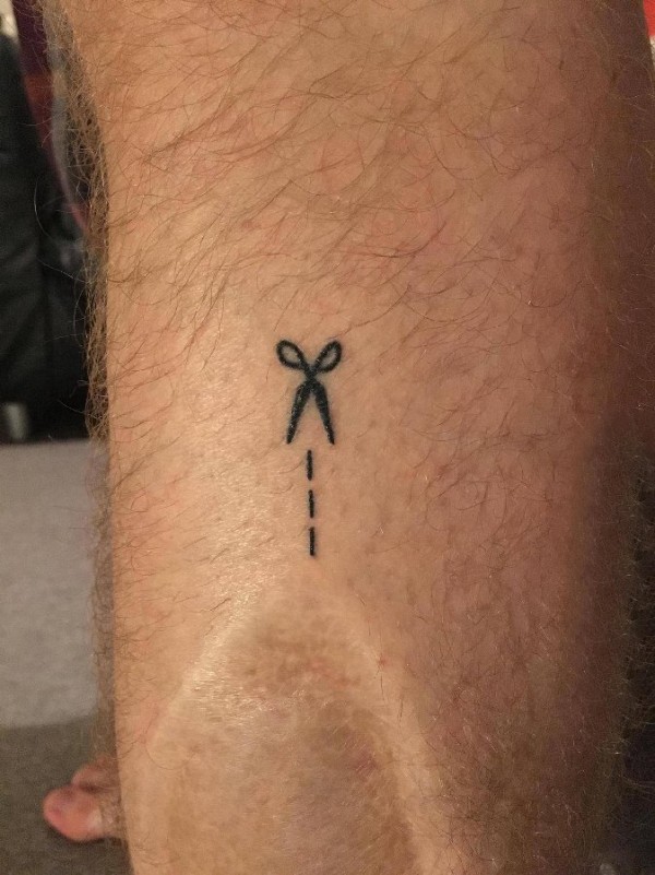 理发剪刀纹身 男生小腿上黑色的剪刀纹身图片