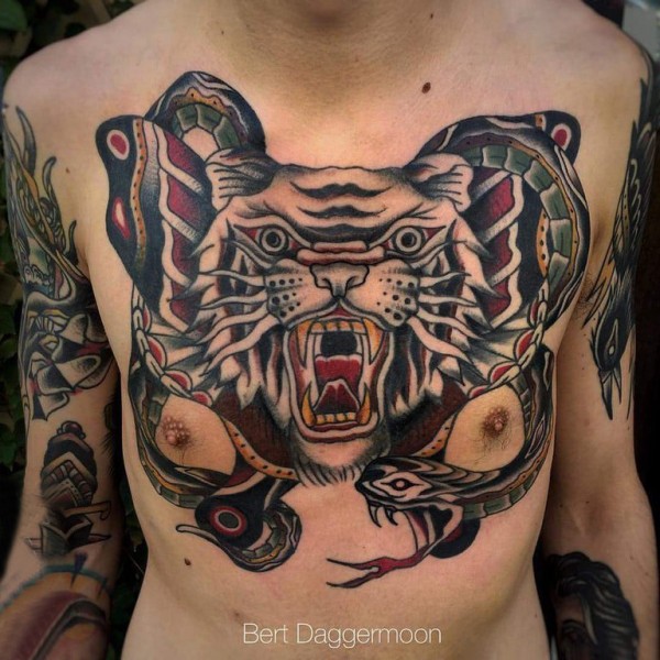 老虎图腾纹身 男生胸部老虎图腾纹身图片