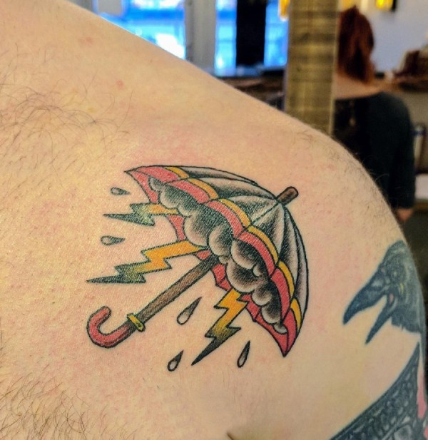肩膀简约纹身 男生肩部闪电和雨伞纹身图片