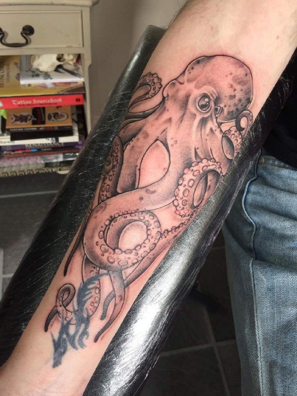 黑色章鱼纹身 女生手臂上黑色章鱼纹身图案