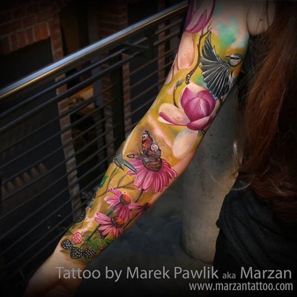 和实物非常相似的手臂花朵纹身图案