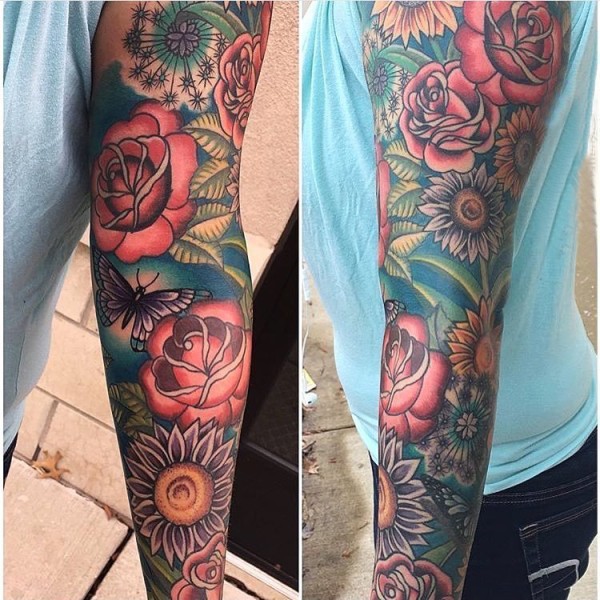 欧美玫瑰纹身 男生手臂上花朵纹身图片