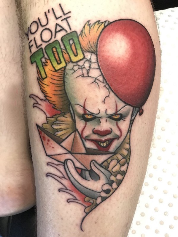 小腿对称纹身 男生小腿上气球和小丑纹身图片