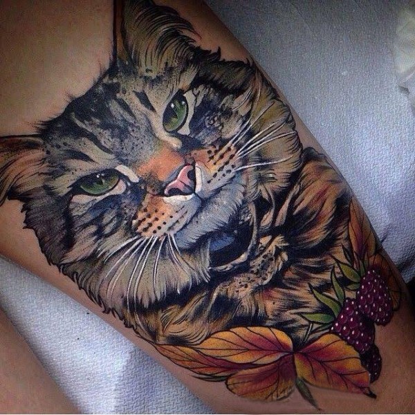 小猫咪纹身 女生小腿上猫咪纹身图案