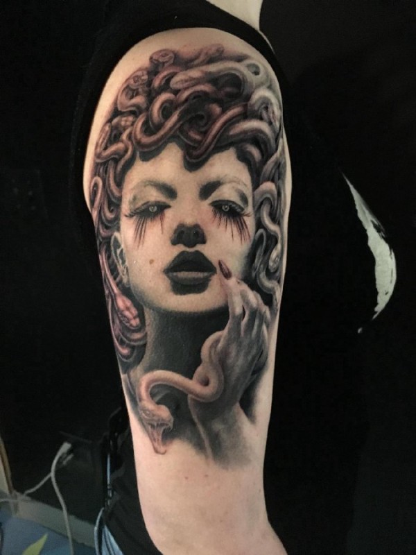 纹身神话人物 女生手臂上黑色的人物纹身图片