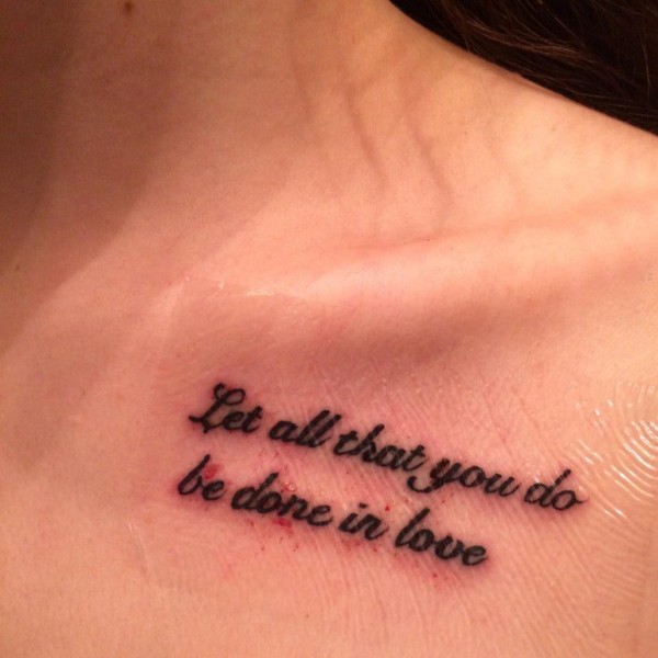 纹身锁骨女 女生锁骨上黑色的花体英文纹身图片